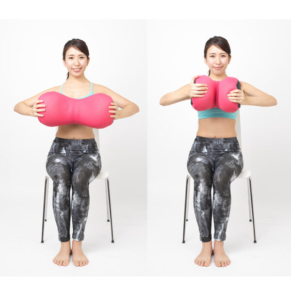 Bạn có thể rèn luyện cơ bắp tay và cơ ngực bằng cách ngồi trên ghế, giữ ghế trước ngực và uốn cong như trong ảnh.